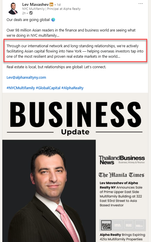 So when investors, clients, or partners are researching opportunities, they see your activity, not just everyone else’s.